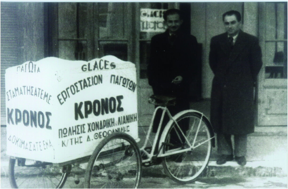 Our trip began in 1920 when the two brothers Dimitrios and Georgios Theofanidis immigrants from Trebizond arrive in Athens and establish the KRONOS Ice Cream Factory. From Charilaou Trikoupi street they distribute their ice to houses and shops with two carts until the year 1929. That year they relocate to Chios and and settle Philip Argenti Street where they remain to this day. Soon the ice cream KRONOS is a reference and identified with local products. For a few but difficult years the company passes into the hands of Mrs. Anna, spouse Demetrius Theofanides. In 1971 the two sons of Georgios Theofanidis, Theophanis and Theodoros undertake and expand the business by creating new flavors. In their hands the reputation of ice cream "Kronos" crossed the local borders and became widely known for its particular flavor.